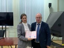 ![]() 1 ноября 2025 года на заседании деканата философского факультета выпускнице кафедры логики А.В. Коньковой в торжественной обстановке был вручен диплом кандидата философских наук. Поздравляем Антонину Викторовну Конькову и желаем ей новых творческих успехов! |