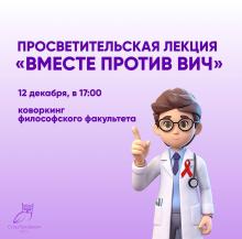 ![]() 12 декабря 2025 года в коворкинге философского факультета в 17:00 пройдет просветительская лекция «Вместе против ВИЧ». |