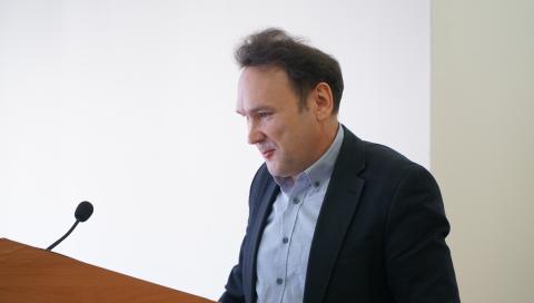Аспирант НИУ ВШЭ М.Д. Евстигнеев выступил с докладом «Синтез чистых созерцаний: К.Л. Рейнгольд и параграф 26 трансцендентальной дедукции категорий», в котором рассуждал о вопросе «Откуда появляется многообразие для чистых созерцаний?».