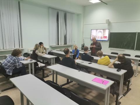 Вместе с заведующим кафедрой философской антропологии проф. Федором Ивановичем Гиренком и проф. Натальей Николаевной Ростовой студенты обсудили культурные стереотипы и прозрения в кинематографе, различие русского и европейского художественного стиля и философскую проблему: что значит быть собой.