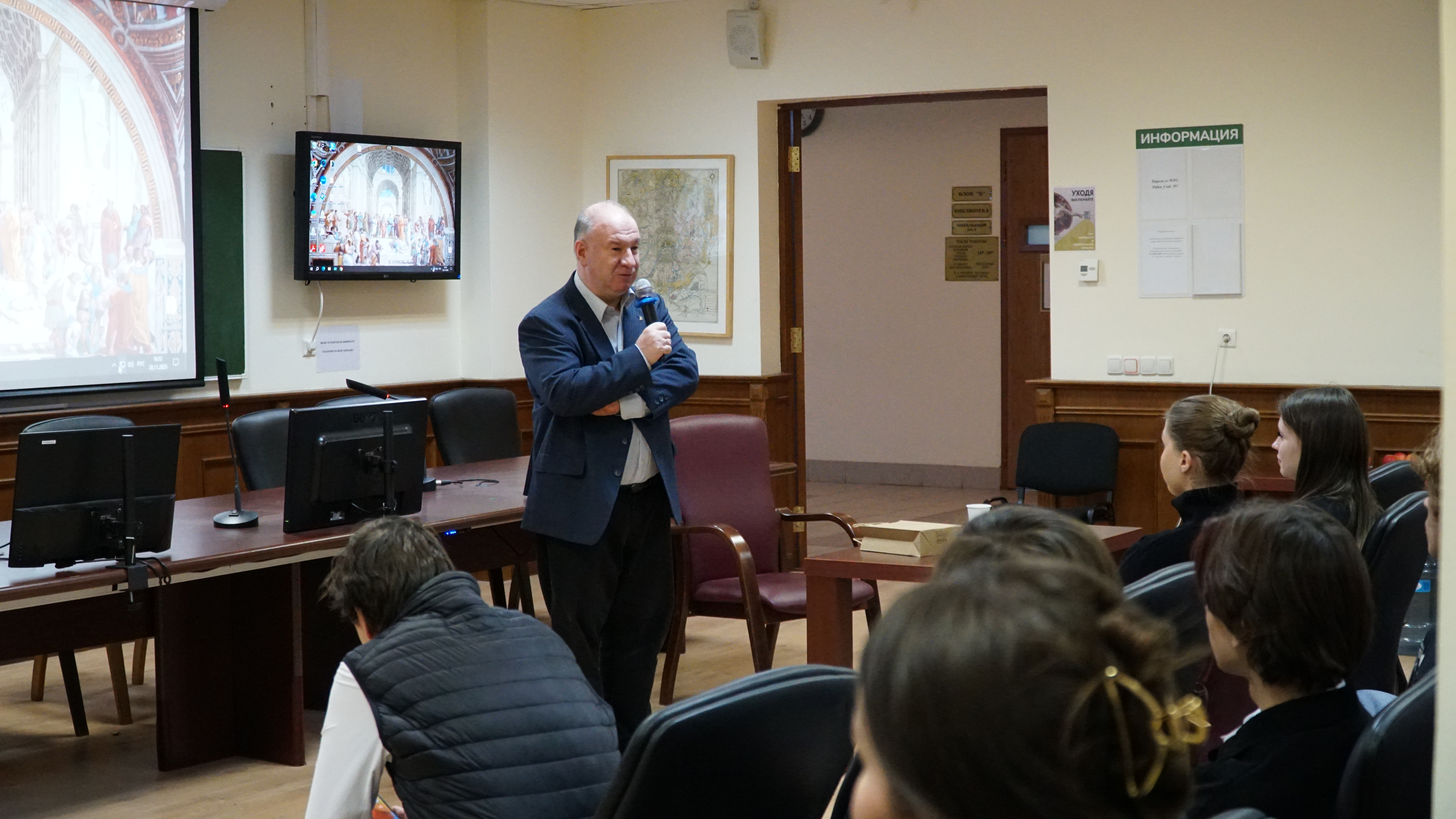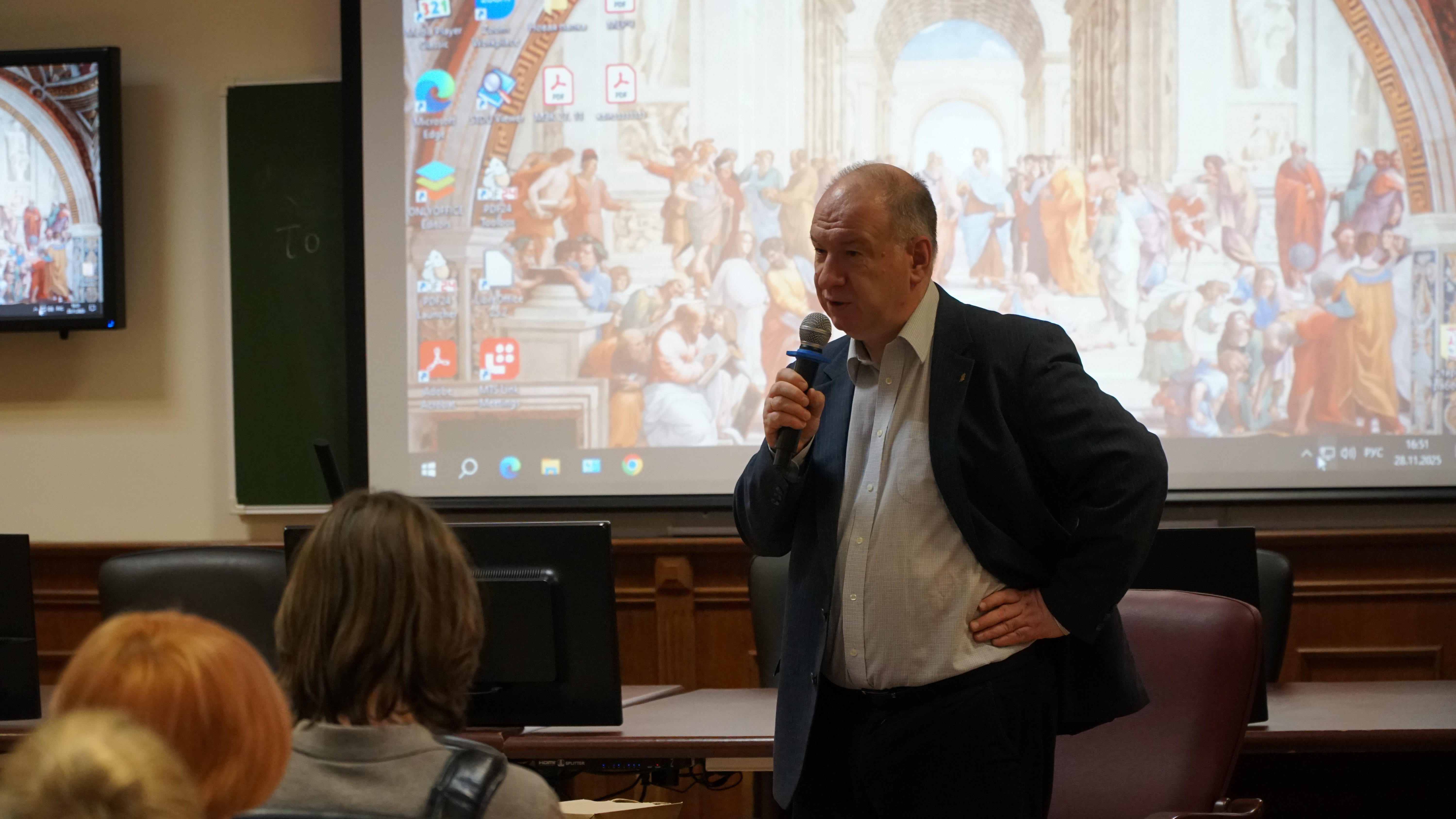 28 ноября 2025 года на философском факультете состоялась встреча студенческого актива с и.о. декана, к.ф.н., заведующим кафедрой истории русской философии Алексеем Павловичем Козыревым.