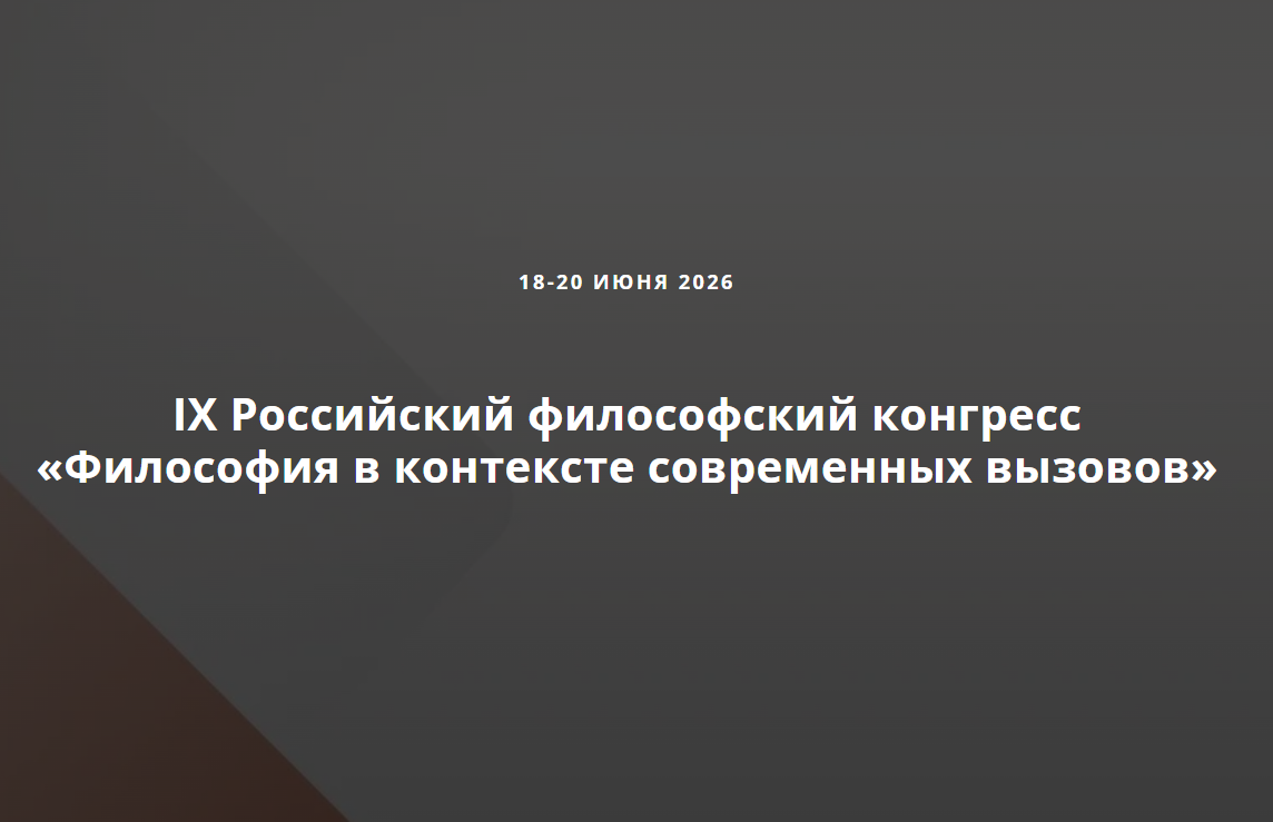 18-20 июня 2026 года в Санкт-Петербурге состоится очередной IX Российский философский конгресс по теме «Философия в контексте современных вызовов мире». Соорганизаторы мероприятия: Институт философии РАН, Российское философское общество, Санкт-Петербургский государственный университет.