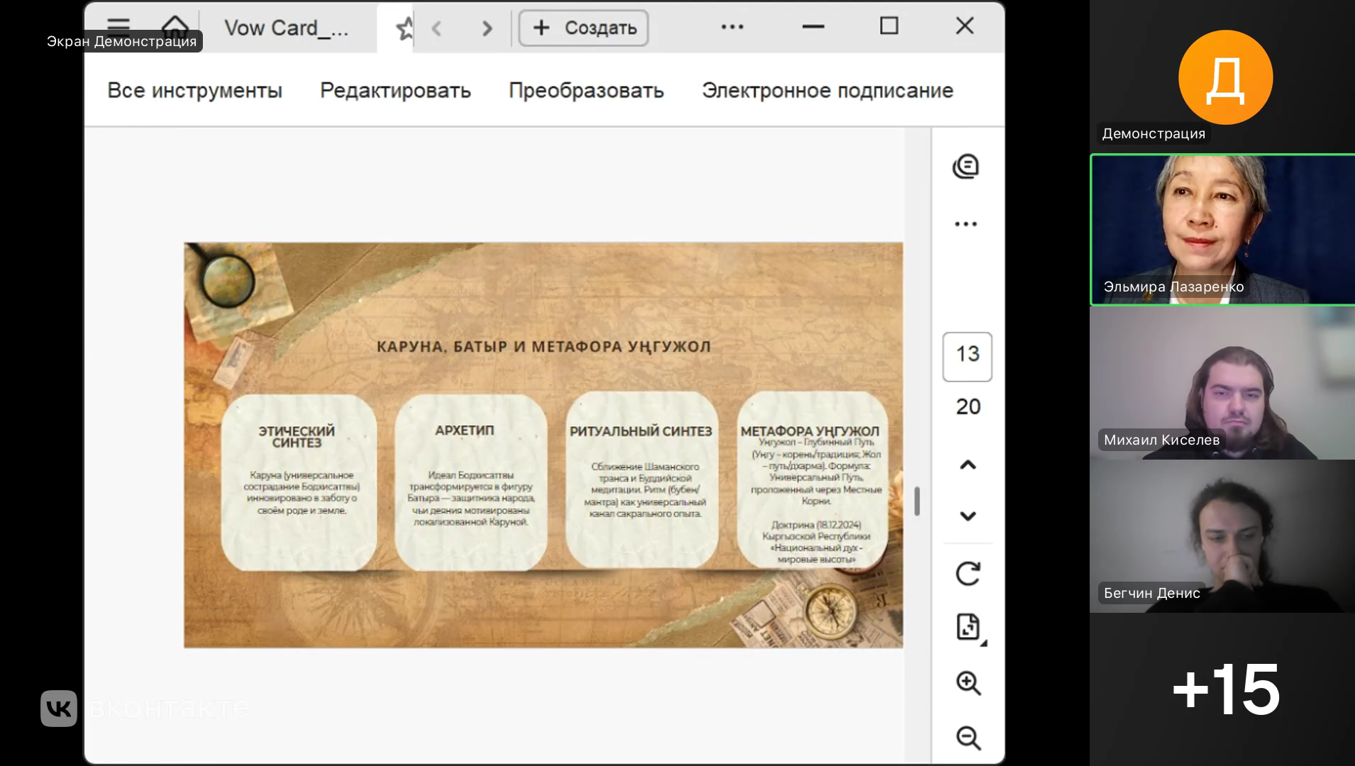 В результате обсуждения было выявлено, что буддизм Махаяны в Центральной Азии стал не внешней религиозной надстройкой, а катализатором формирования уникального феномена множественной духовности, в которой соединяются универсальные и локальные начала. Центральная Азия была представлена как пространство духовного синтеза и диалога, воплощённое в метафоре Уңгужол - глубинного пути, объединяющего земное и трансцендентное.