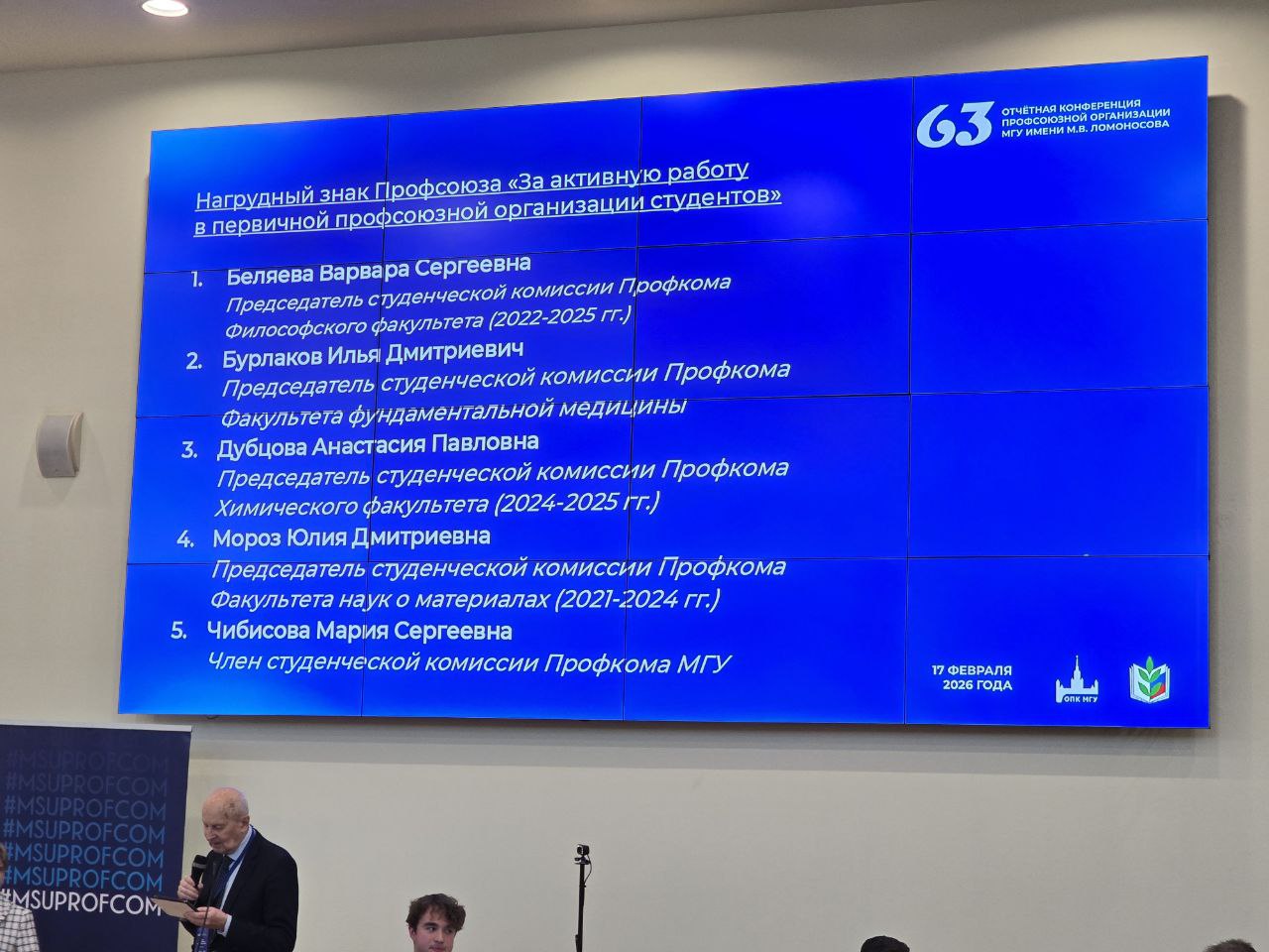 17 февраля 2026 года состоялась 63 Отчётная конференция Профсоюзной организации МГУ имени М. В. Ломоносова.