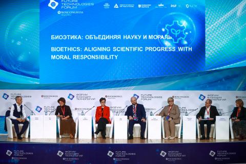 В рамках сессии «Биоэтика: объединяя науку и мораль» обсуждались форматы этического регулирования науки и технологий, вопросы допустимых границ вмешательства в человеческую жизнь и природу, конфликты между научным прогрессом, экономическими интересами и моральными принципами общества.