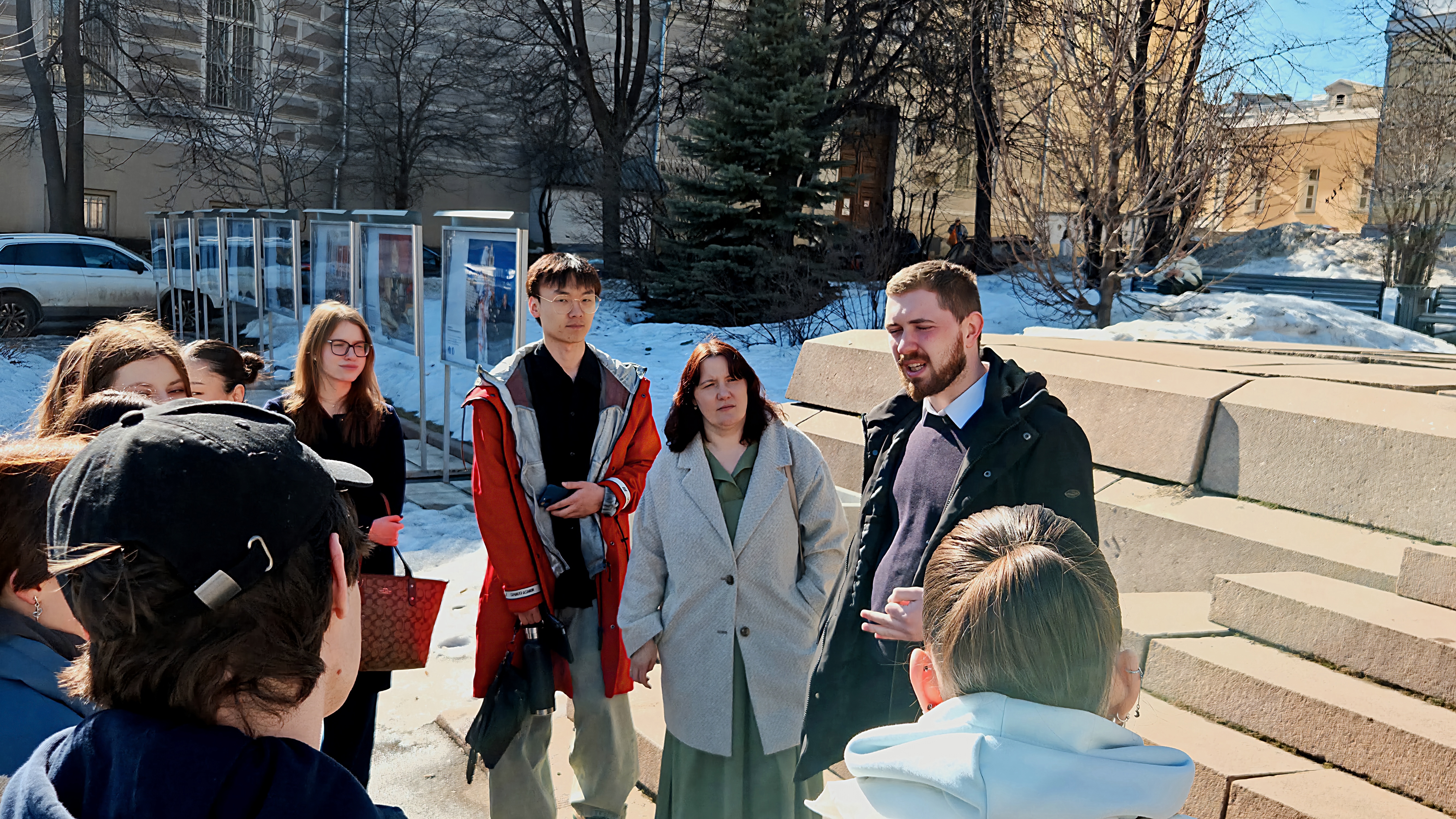 21 марта 2026 года по инициативе кафедры истории русской философии студенты 1 курса отделения РиСО под руководством преподавателей философского факультета Матвея Игоревича Рухмакова и Елены Сергеевны Малер посетили с экскурсией здания Московского государственного университета на Моховой.
