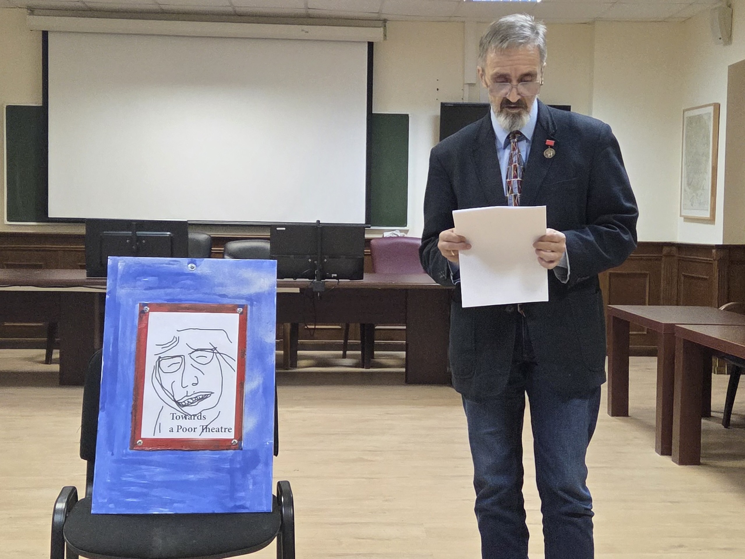 2. Доцент кафедры эстетики философского факультета Сергей Анатольевич Дзикевич — доклад-перформанс «Бедный Гротовский: кризис театрального искусства середины 20-х годов XXI века»
